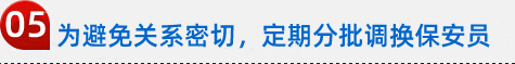 1、為避免保安員與員工關(guān)系過于密切影響執(zhí)法力度,可根據(jù)甲方要求,定期分批調(diào)換保安員。